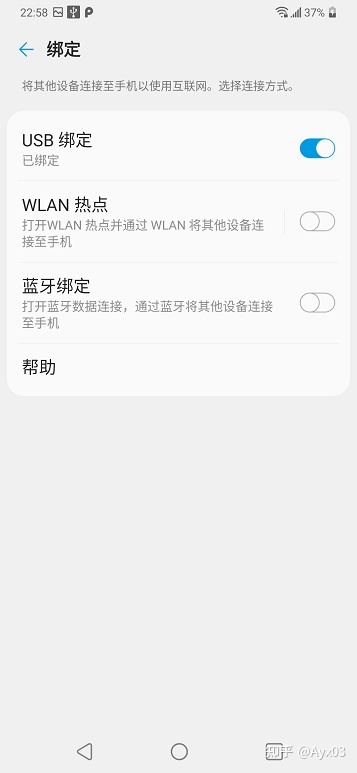 设置 - 网络和互联网 - 绑定 - 开启 - USB绑定